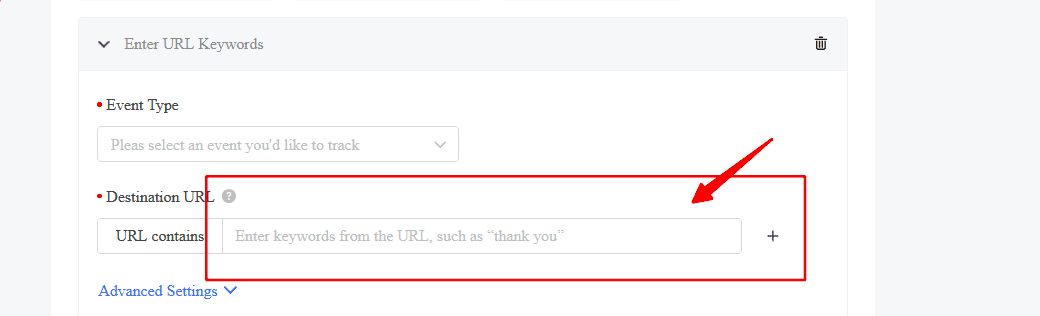 3.View content:choose Enter URL Keywords, then insert your LP link